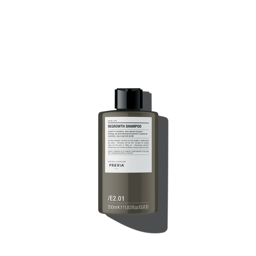 Shampoo anticaduta* stimolante per cute sensibile e capelli tendenti alla caduta. La combinazione dei tre attivi stimola il cuoio capelluto e favorisce l'ispessimento e la crescita dei capelli. Dermatologicamente testato su pelle sensibile.
