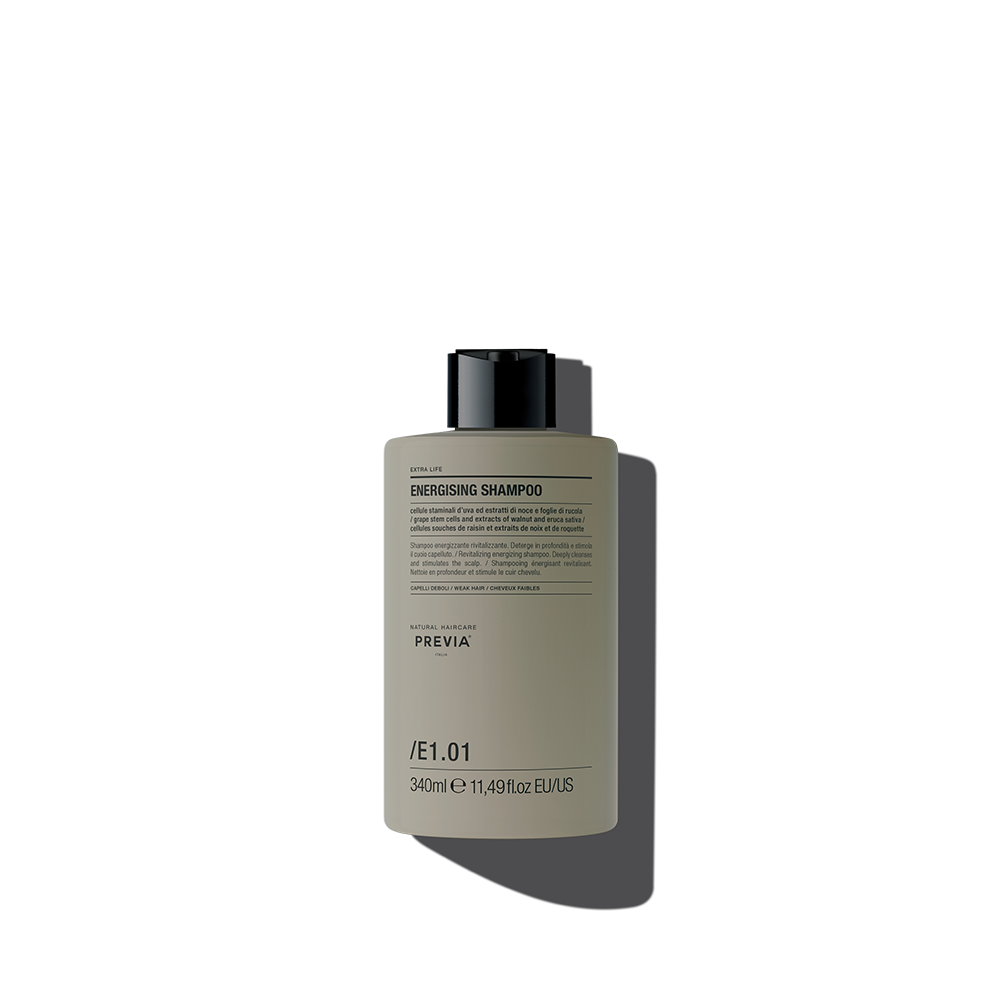 Shampoo energizzante. Deterge in profondità e stimola il cuoio capelluto, proteggendo la cute dall’inquinamento ambientale. Dona alla chioma un aspetto sano, rinforzandola e fortificandola.